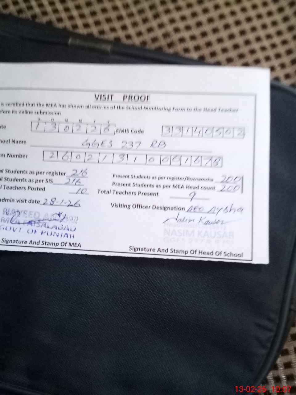 | Certified that this School was Inspected by the Undersigned MEA/DMO Today and the Information Stated Above is as Per Record. | |||||
