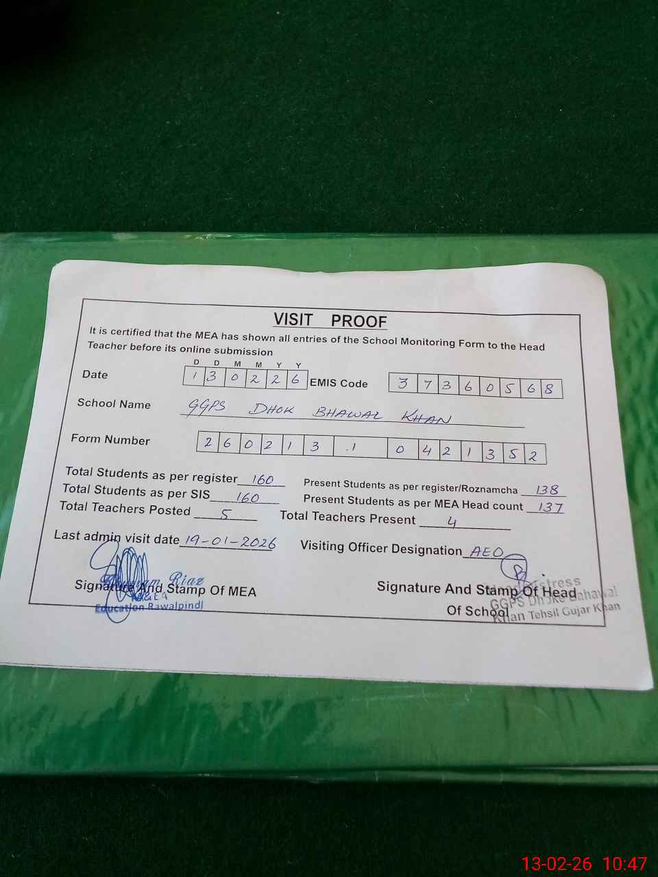 | EMIS Code: 37360568 | Name of School: GGPS DHOK BHAWAL KHAN | |||
