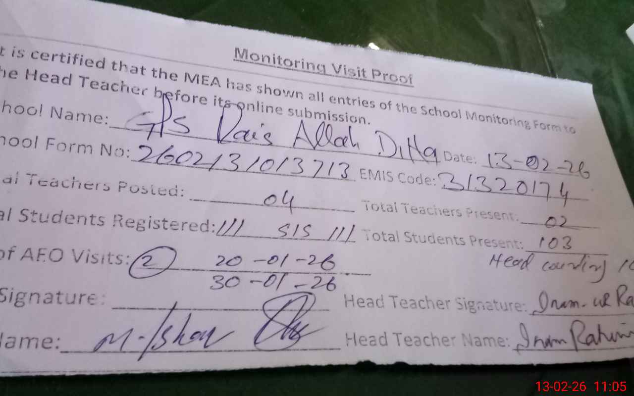 | EMIS Code: 31320174 | Name of School: GPS RAIS ALLAH DITTA | |||