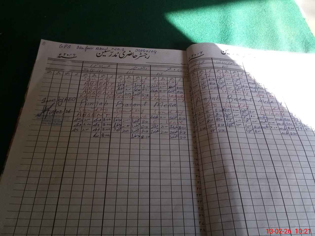 | CNIC | Full Name | Designation | R/C | Absence During Last Calender Month |
