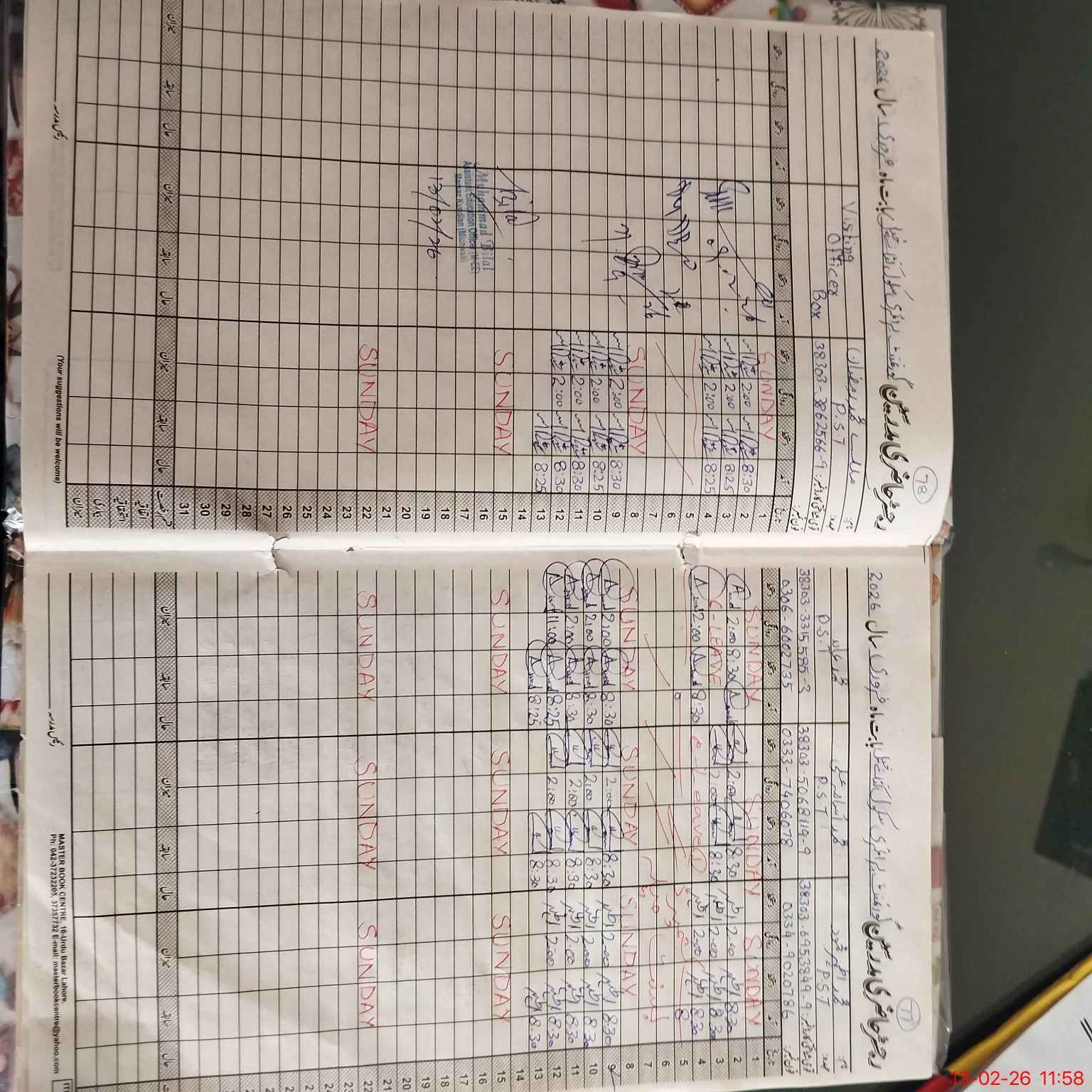 | CNIC | Full Name | Designation | R/C | Absence During Last Calender Month |
