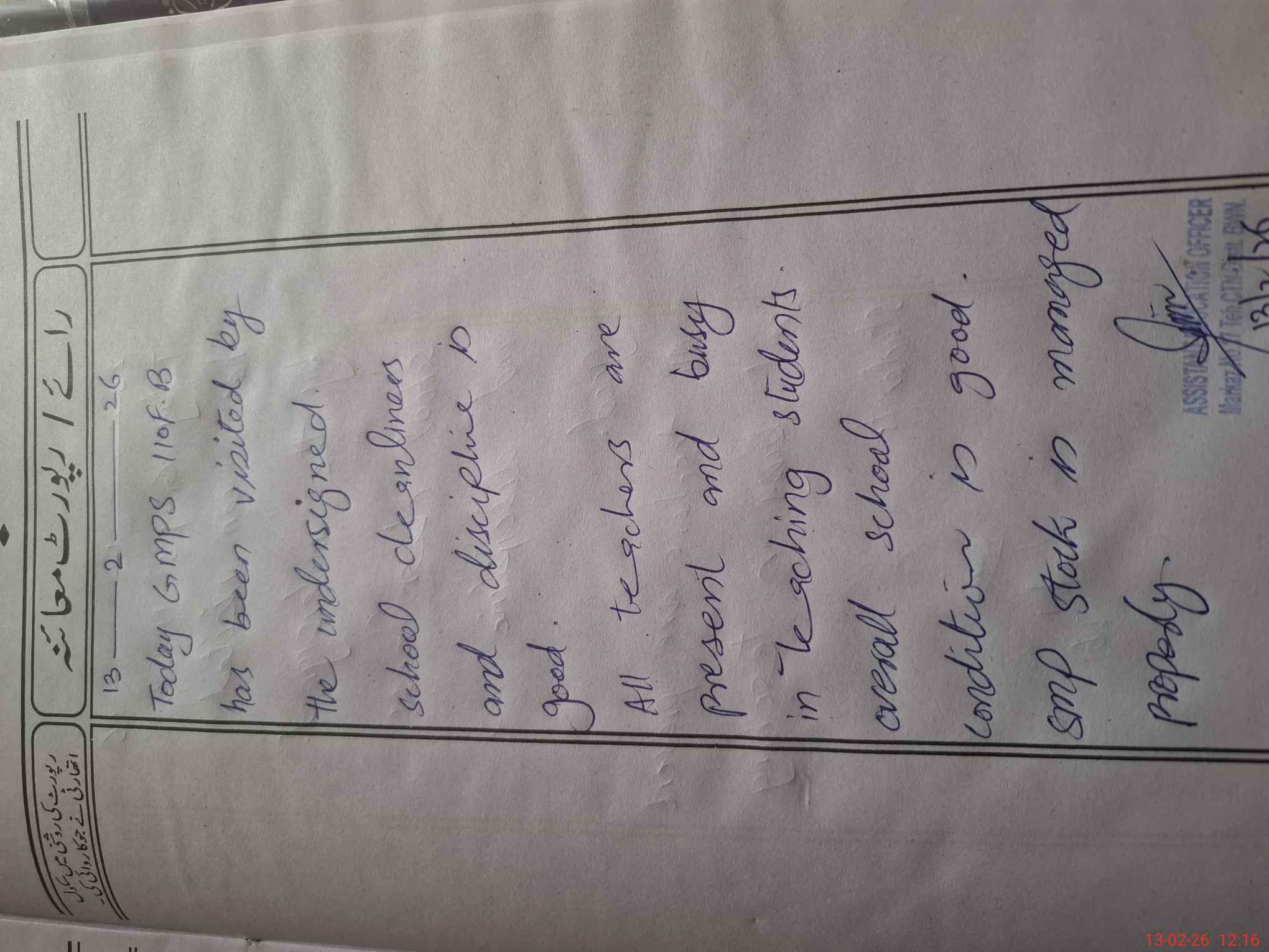 | Certified that this School was Inspected by the Undersigned MEA/DMO Today and the Information Stated Above is as Per Record. | |||||