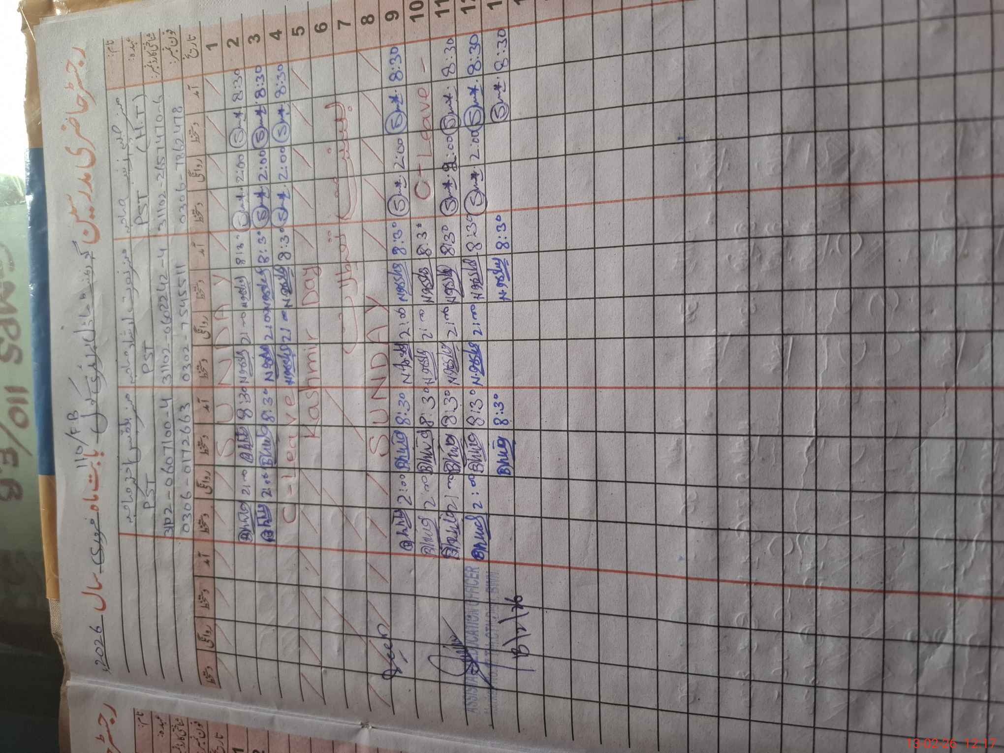 | CNIC | Full Name | Designation | R/C | Absence During Last Calender Month |