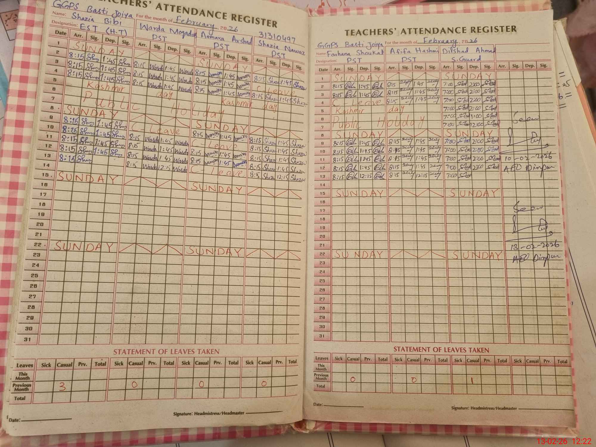 | Leave | Duty | Absent | Maternity | Medical | Ex- Pak |