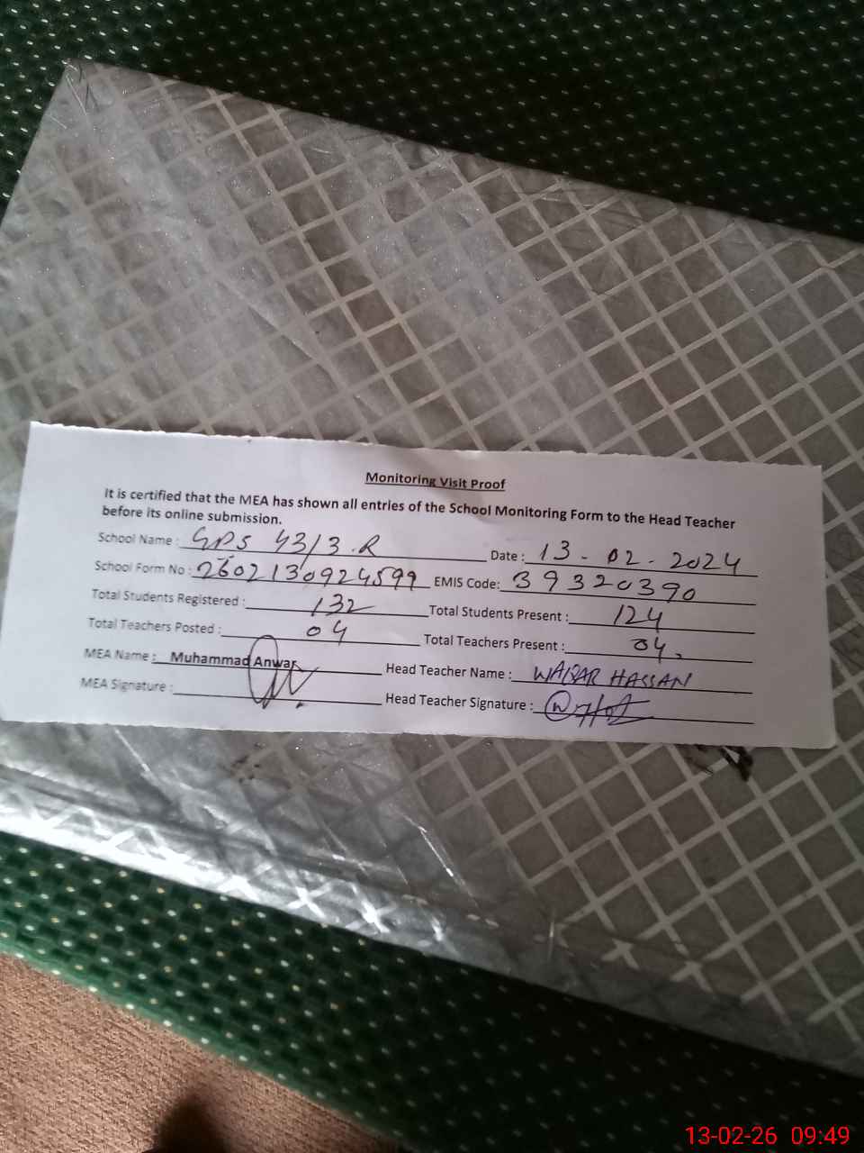 | EMIS Code: 39320390 | Name of School: GPS CHAK NO. 43/ 3-R | |||