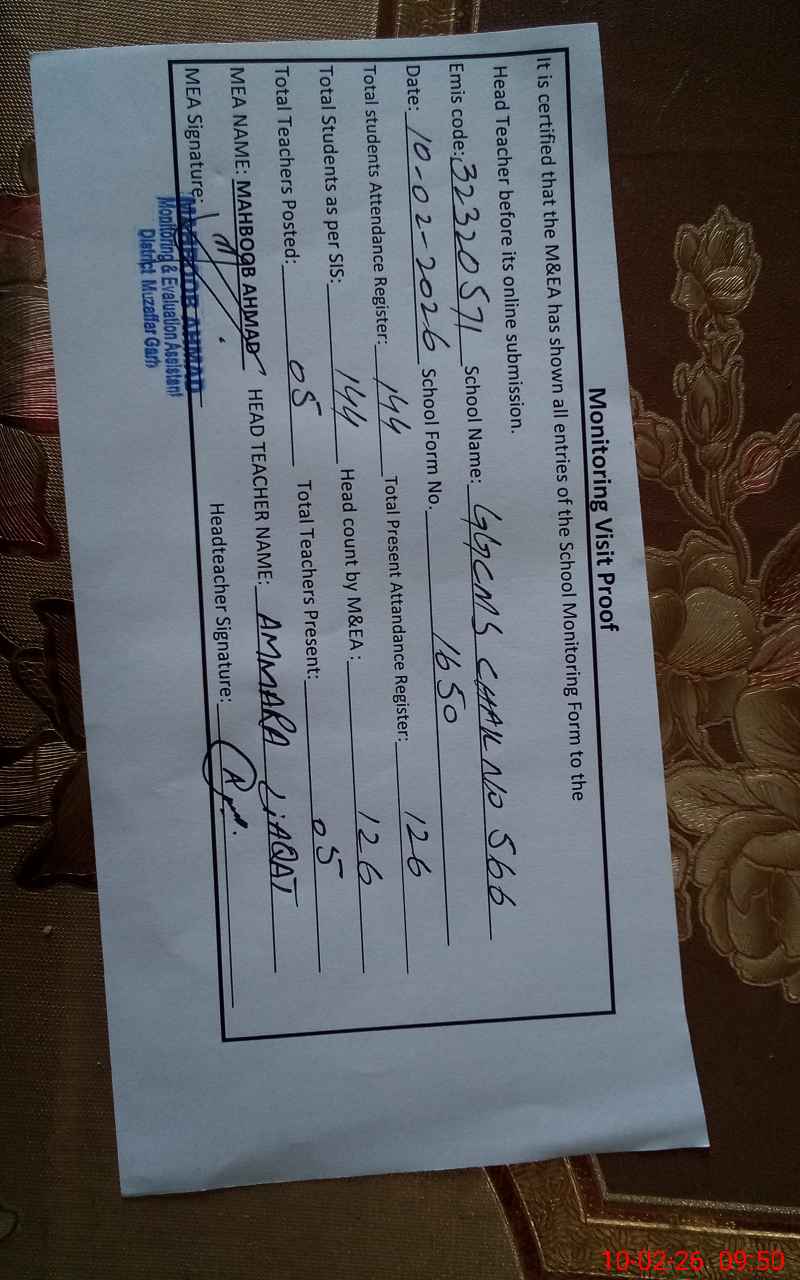 | EMIS Code: 32320571 | Name of School: GGCMS CHAK NO. 566/TDA | |||