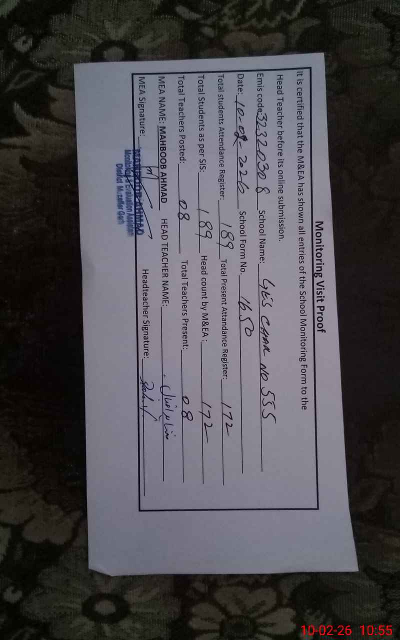 | EMIS Code: 32320308 | Name of School: GES CHAK NO. 555-TDA | |||
