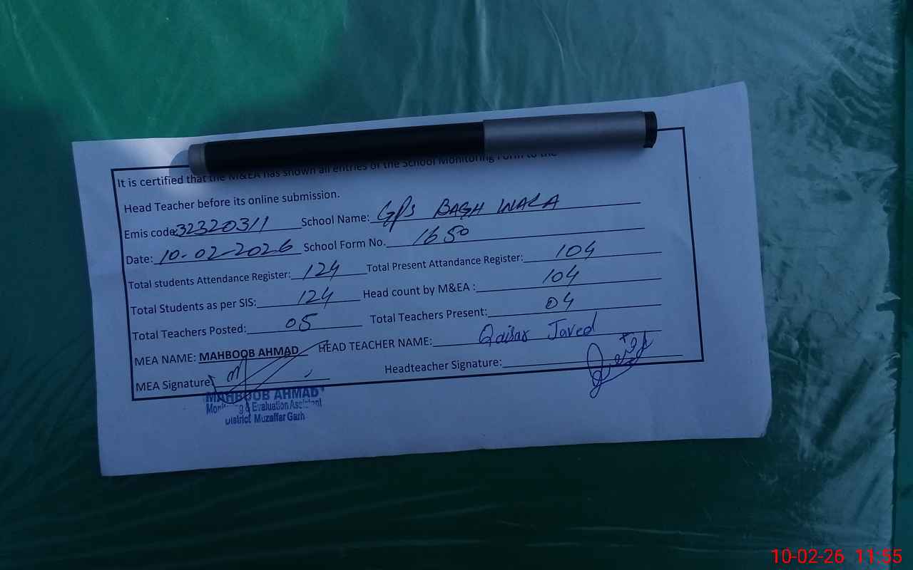 | EMIS Code: 32320311 | Name of School: GPS BAGH WALA | |||