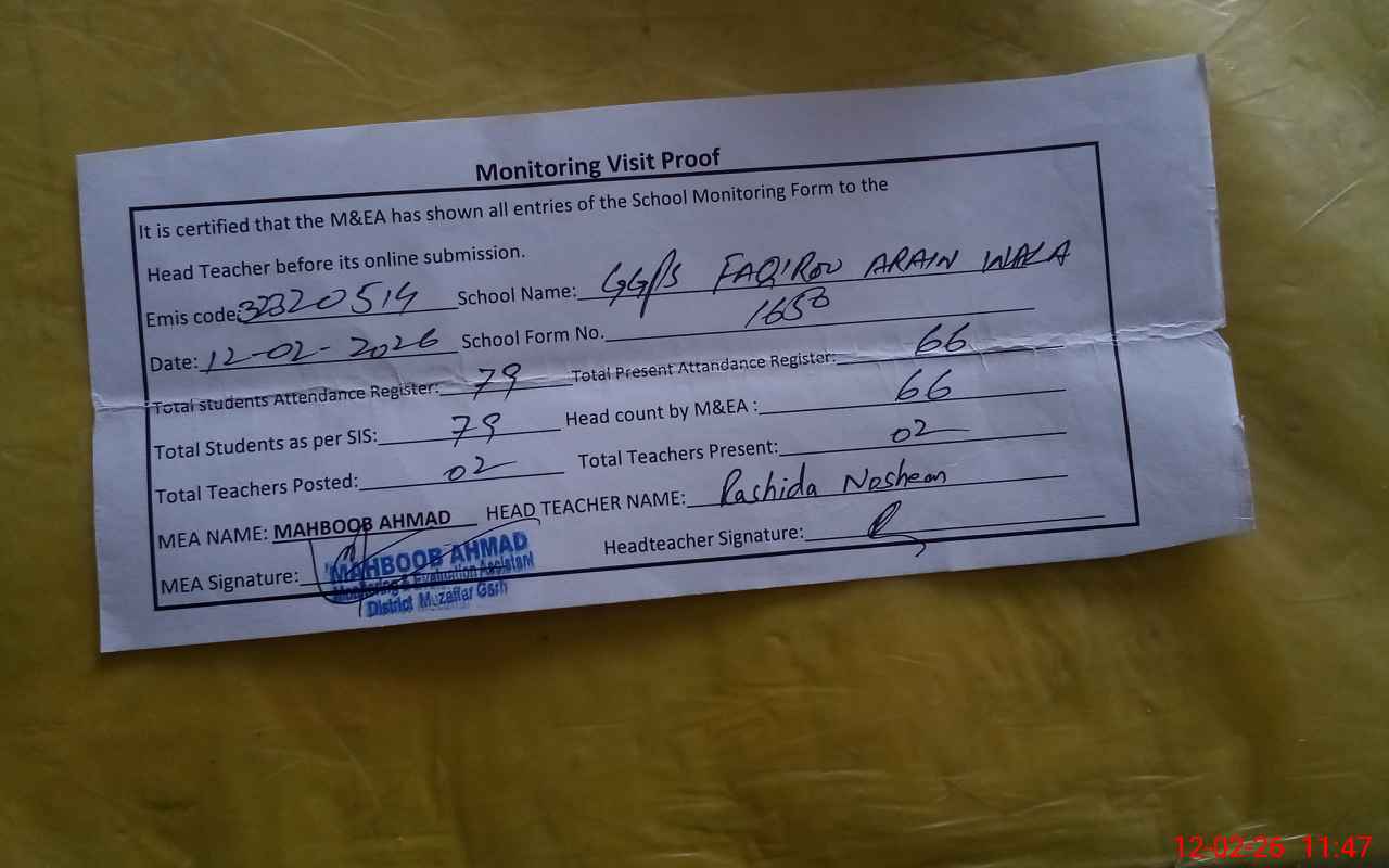 | EMIS Code: 32320514 | Name of School: GGPS FAQIROO ARAIN | |||