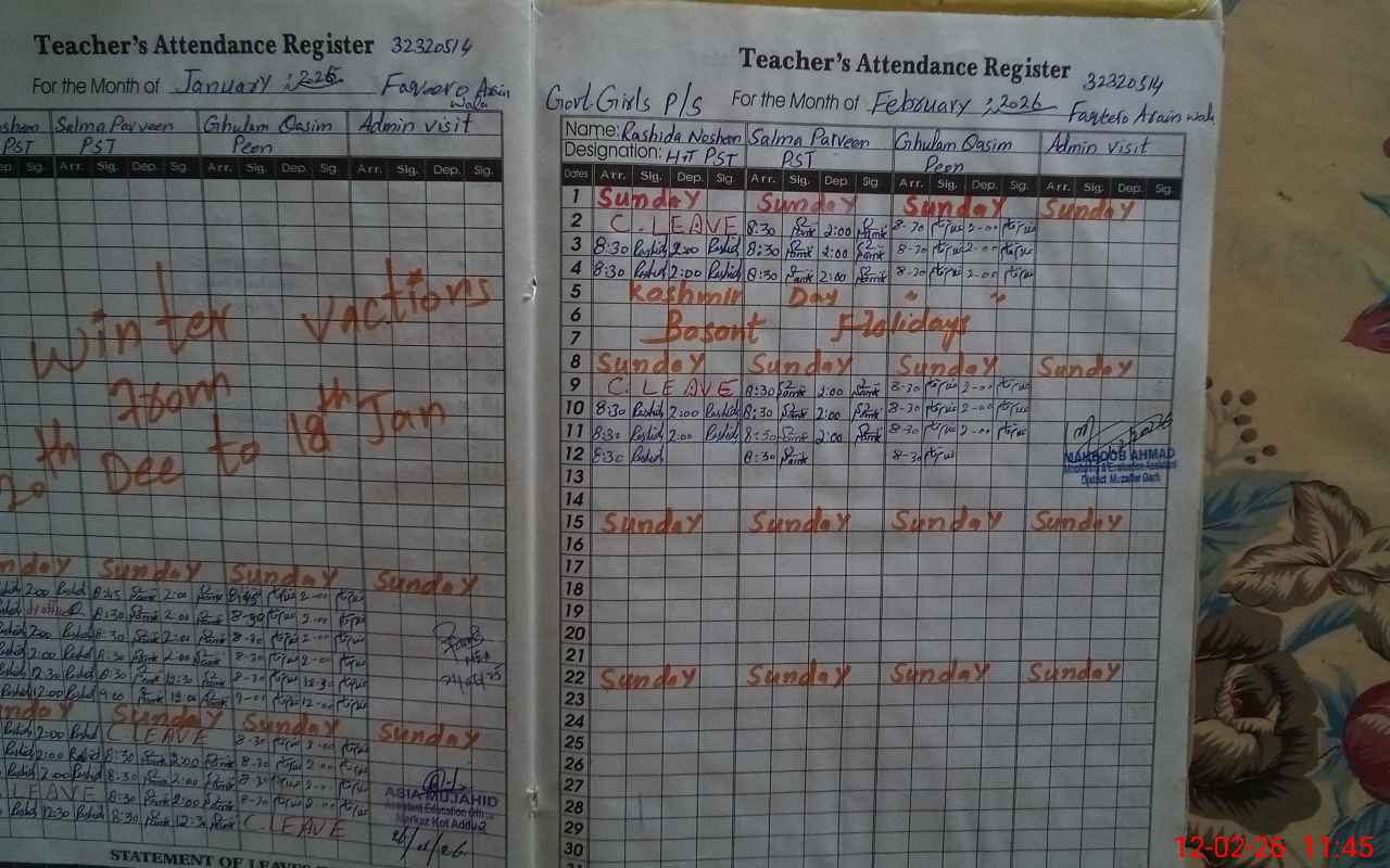 | Attendance Register | Head Teacher | MEA with School | Visit Proof |