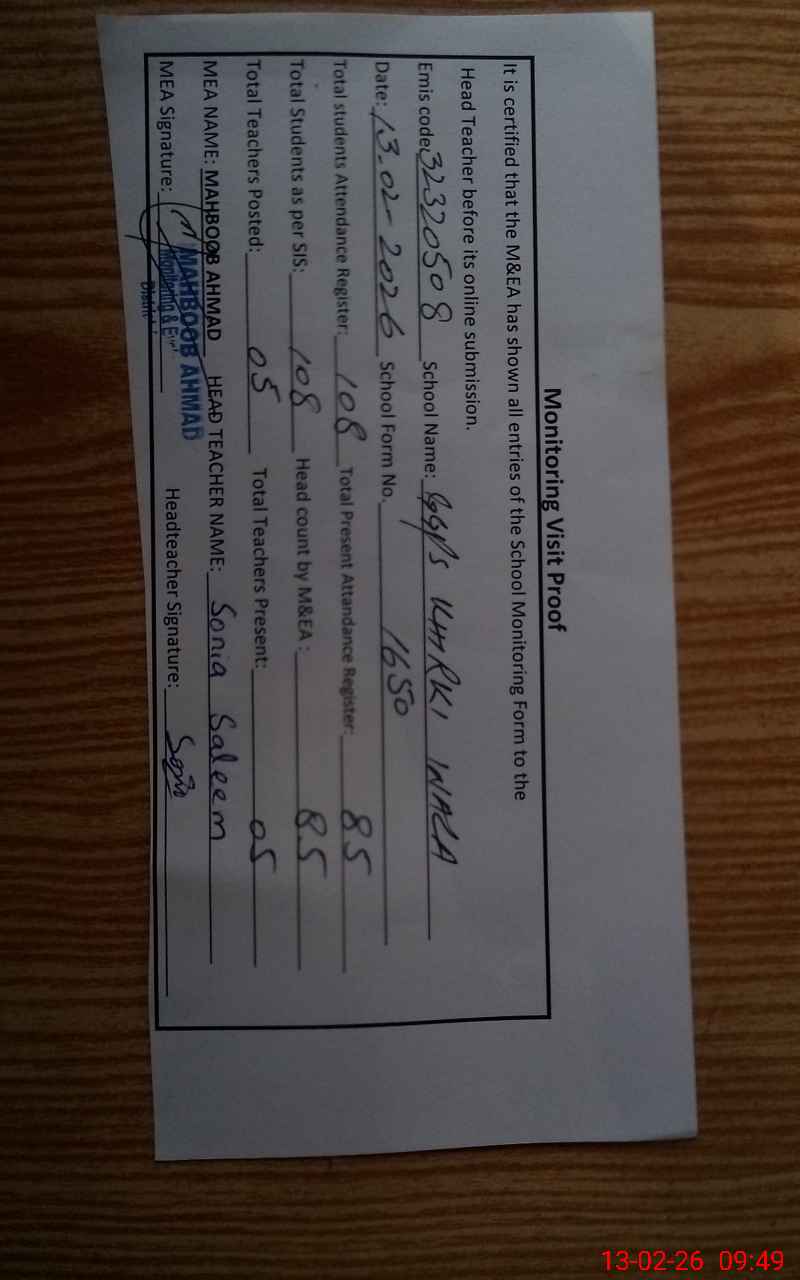 | EMIS Code: 32320508 | Name of School: GGPS KHIRKI WALA | |||