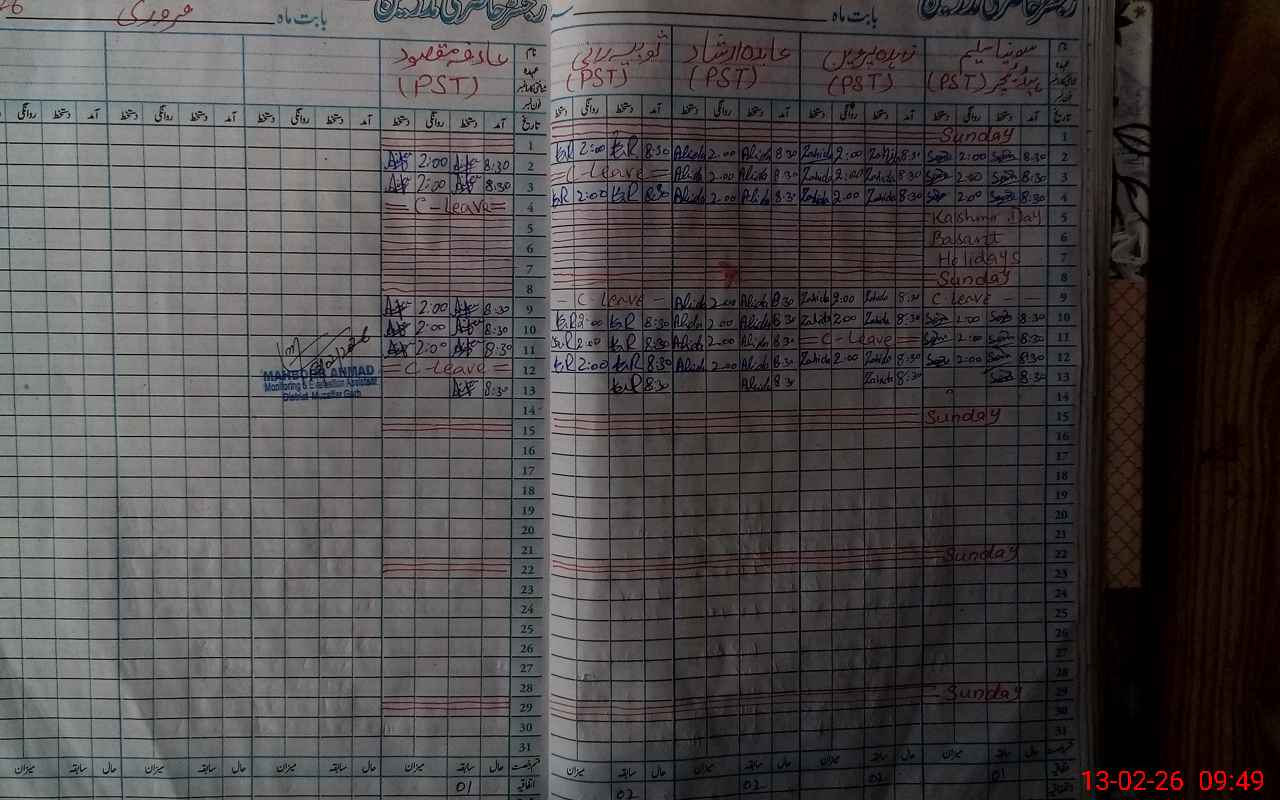 | Name: NA**** AK**** Designation: (School Headmaster's/Headmistress's) PST Phone/Cell Number: 03**** |