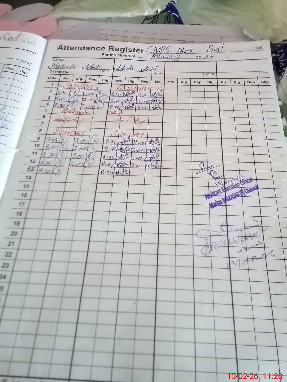 | Name: Sh**** Ad**** Designation: (School Headmaster's/Headmistress's) Headmistress Phone/Cell Number: 03**** |