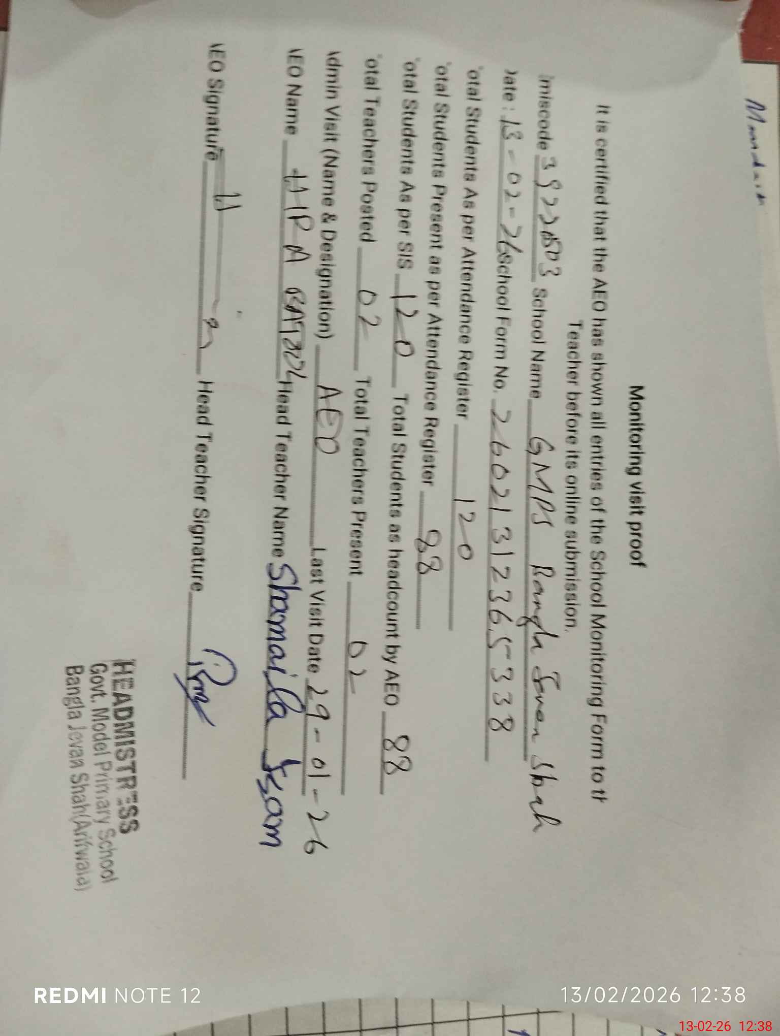 | EMIS Code: 39220503 | Name of School: GMPS BANGLA JEVAN SHAH | |||