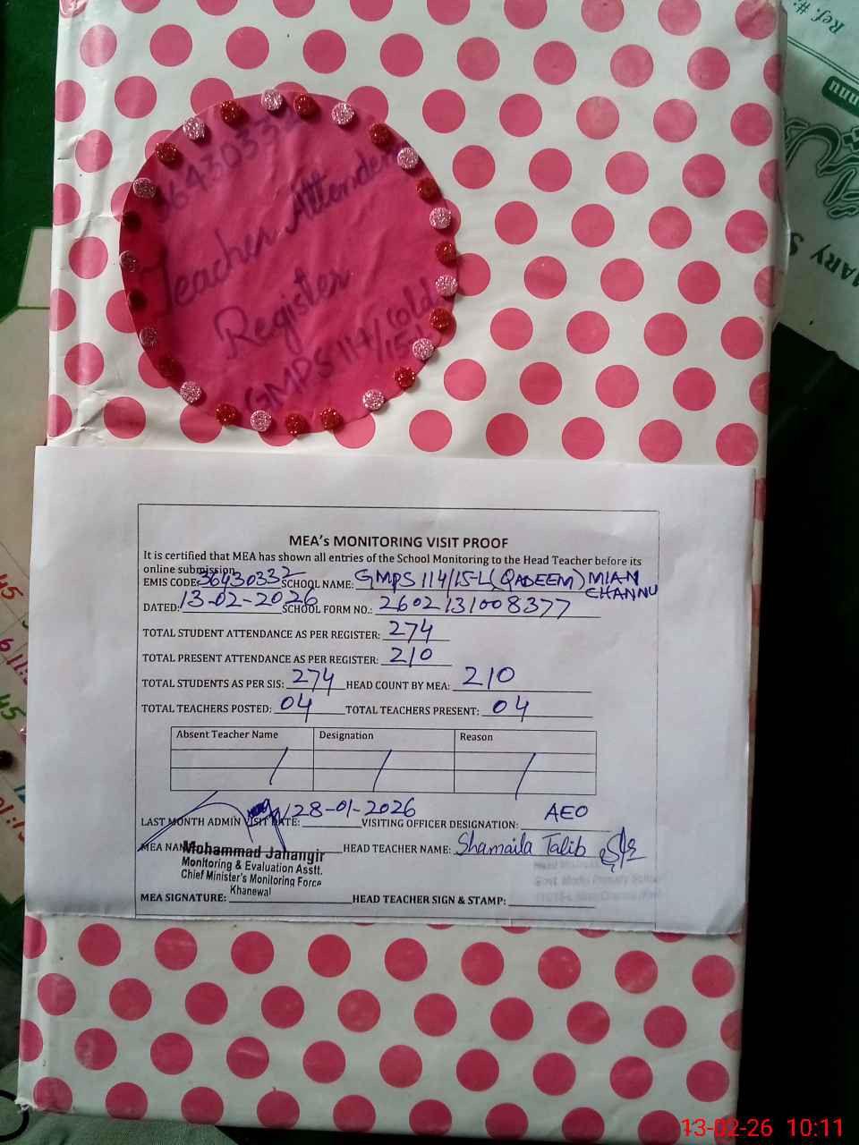 | EMIS Code: 36430332 | Name of School: GGPS 114/15-L QADEEM, MIAN CHANNU | |||