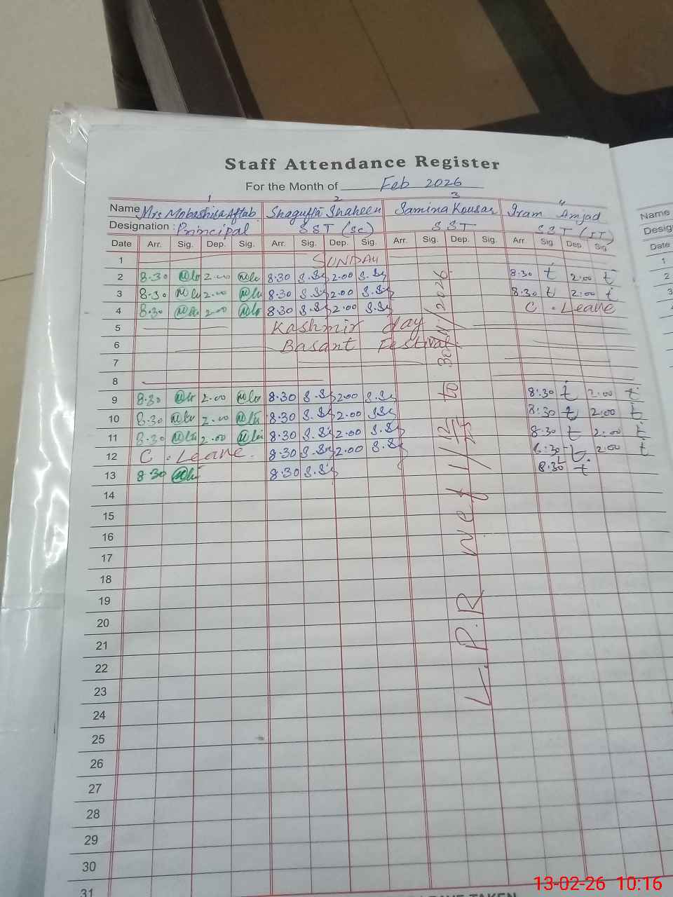 | No. of Students Present - Male | 0 | 0 | 0 | 0 | 0 | 0 | 0 | 0 | 0 | 0 | 0 | 0 | 0 | |||