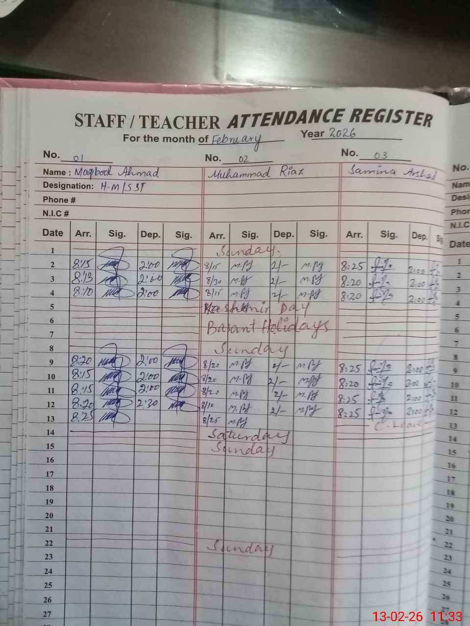 | Name: Ma**** Ah**** Designation: (School Headmaster's/Headmistress's) Head Master Phone/Cell Number: 03**** |