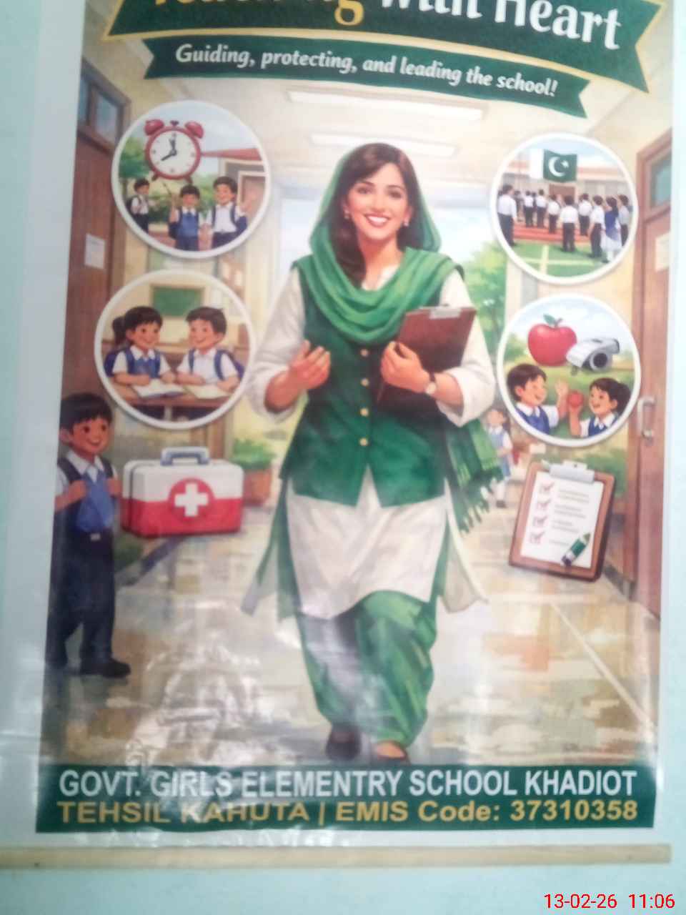 | District: RAWALPINDI | Tehsil: KAHUTA | Markaz: KHADIOT - FEMALE | Level: Middle | |