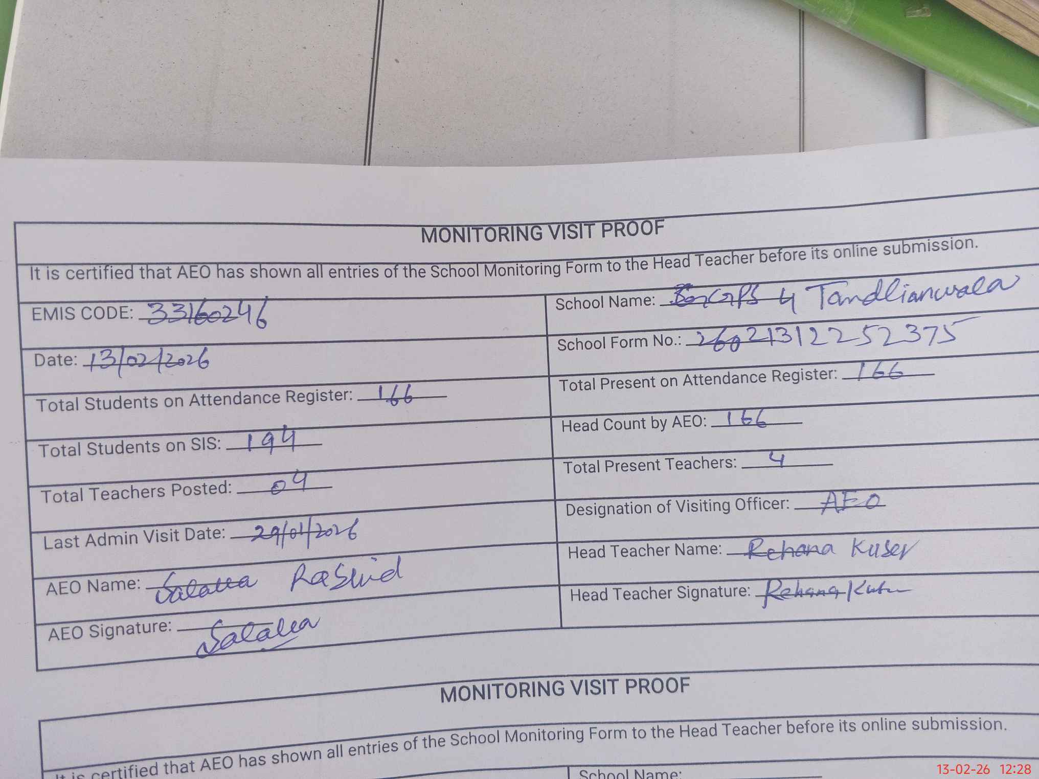 | EMIS Code: 33160246 | Name of School: GGPS 4 TANDLIANWALA | |||