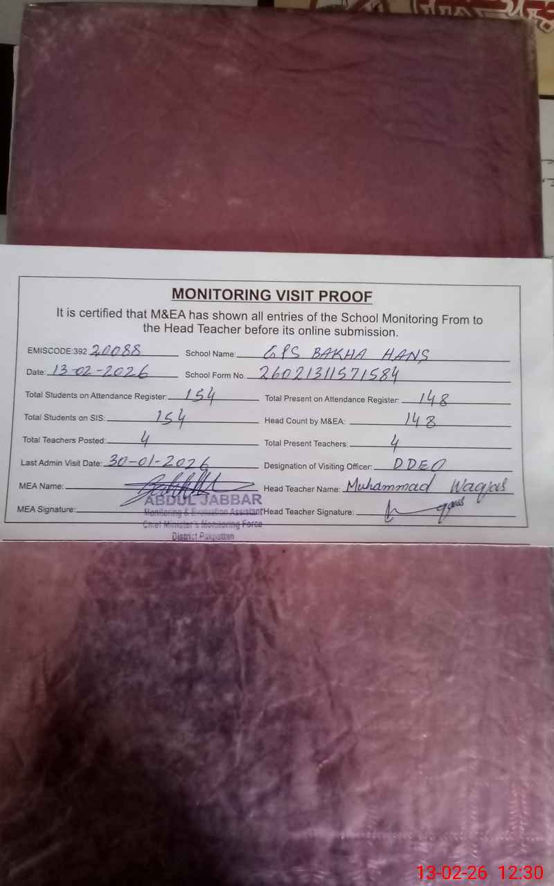 | EMIS Code: 39220088 | Name of School: GPS BAKHA HANS | |||