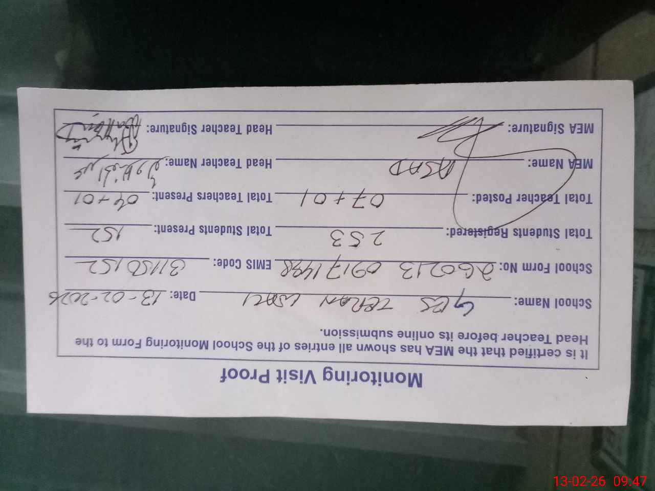 | Certified that this School was Inspected by the Undersigned MEA/DMO Today and the Information Stated Above is as Per Record. | |||||