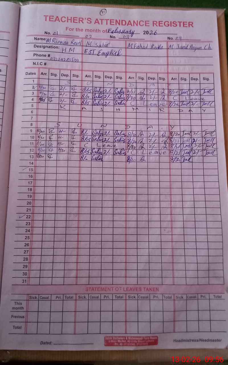 | Name: MU**** RI**** RA**** Designation: (School Headmaster's/Headmistress's) SST (Sc.) Phone/Cell Number: 03**** |