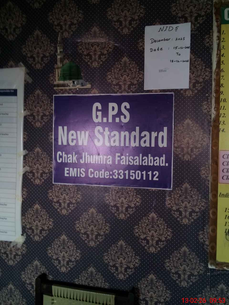 | EMIS Code: 33150112 | Name of School: GPS NEW STANDARD CHAK JHUMRA | |||