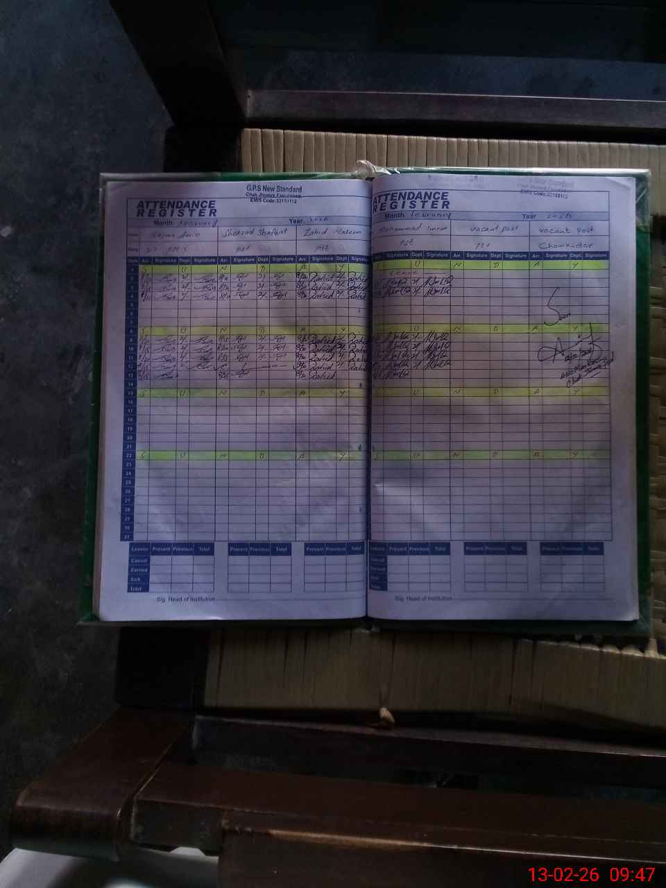 | Attendance Register | Head Teacher | MEA with School | Visit Proof |