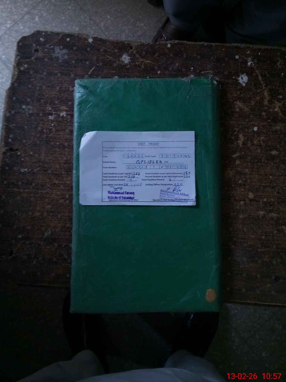| Attendance Register | Head Teacher | MEA with School | Visit Proof |