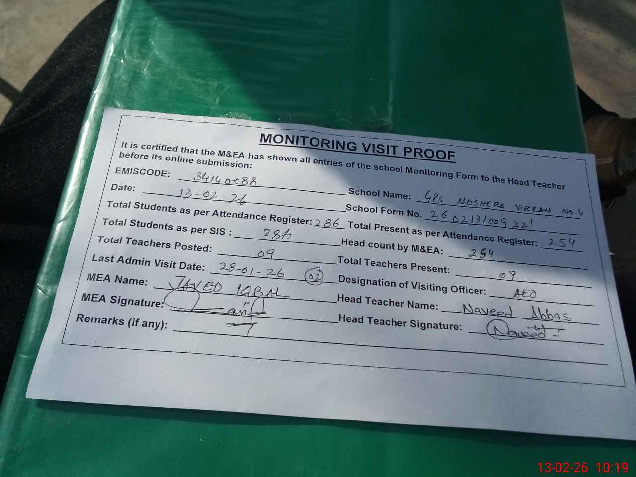 | EMIS Code: 34140088 | Name of School: GPS NOWSHERA VIRKAN NO.4 | |||