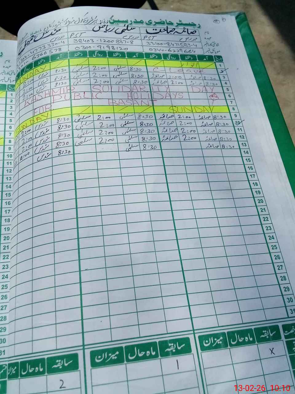 | Name: Na**** Ab**** Designation: (School Headmaster's/Headmistress's) PST Phone/Cell Number: 03**** |