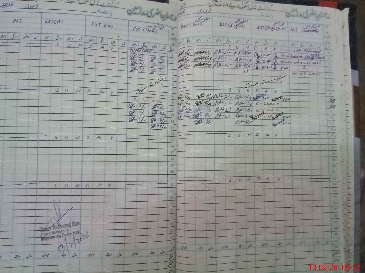 | CNIC | Full Name | Designation | R/C | Absence During Last Calender Month |