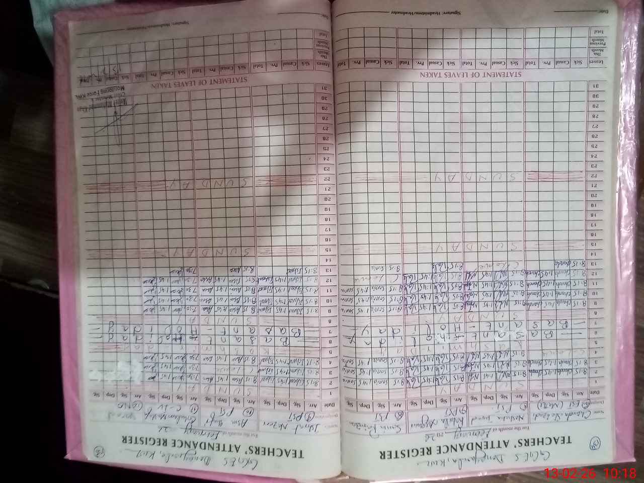 | Total Students Present | 0 | 0 | 30 | 21 | 20 | 12 | 14 | 18 | 11 | 17 | 185 | |||||