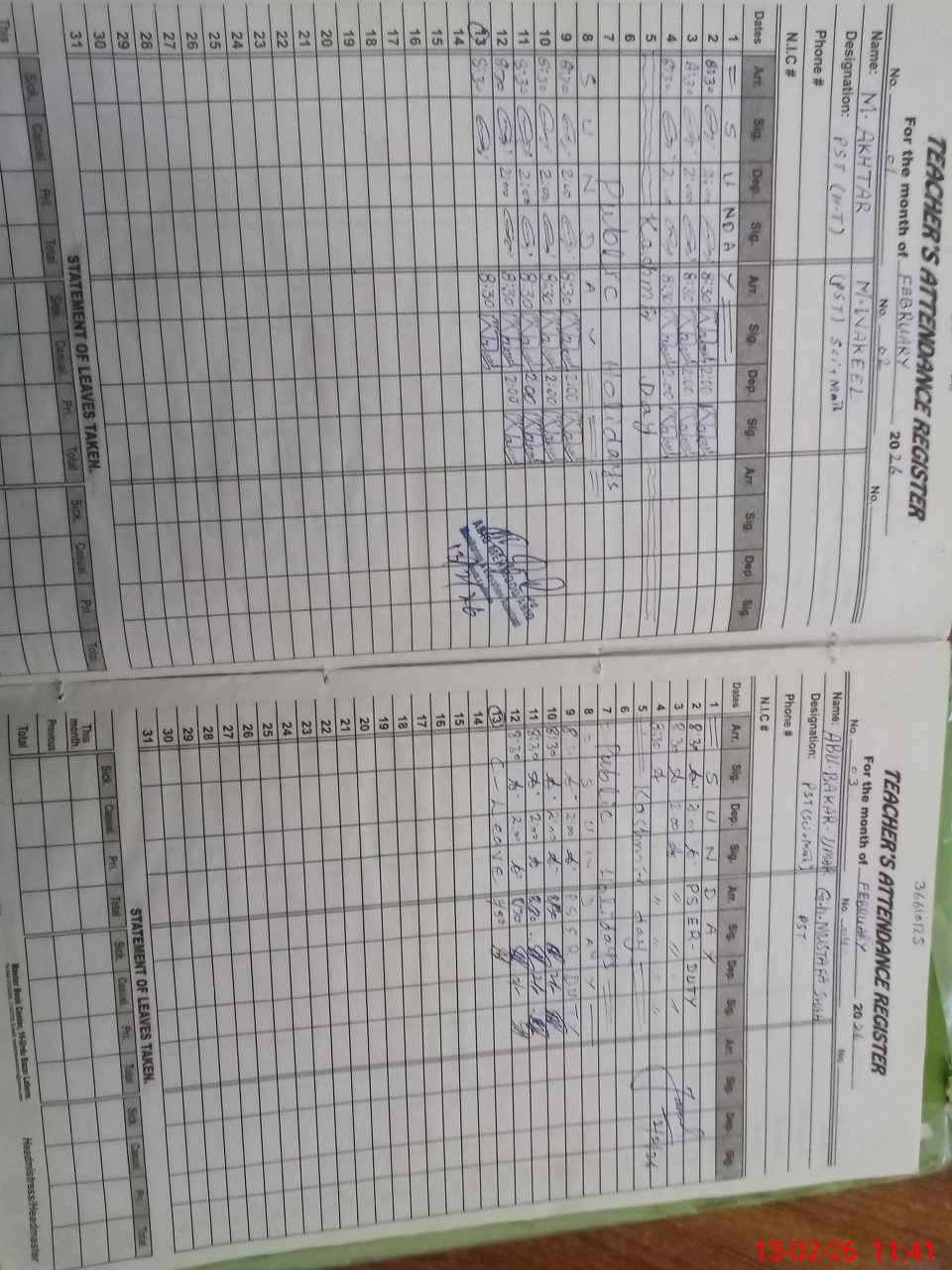 | 36**** | Ab**** Ba**** Um**** Dr**** | PST Science/Maths | Regular | 0 | 0 | 0 | 0 | 0 | 0 | 0 | 0 | 0 | Casual |