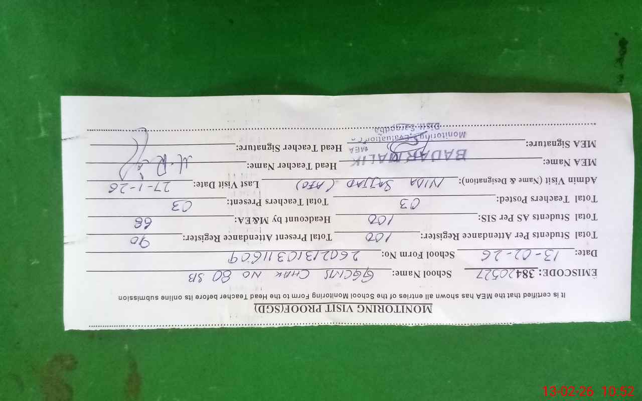 | EMIS Code: 38420567 | Name of School: GGPS CHAK NO.86 SB | |||