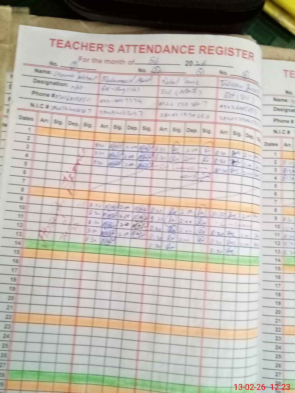 | CNIC | Full Name | Designation | R/C | Absence During Last Calender Month |