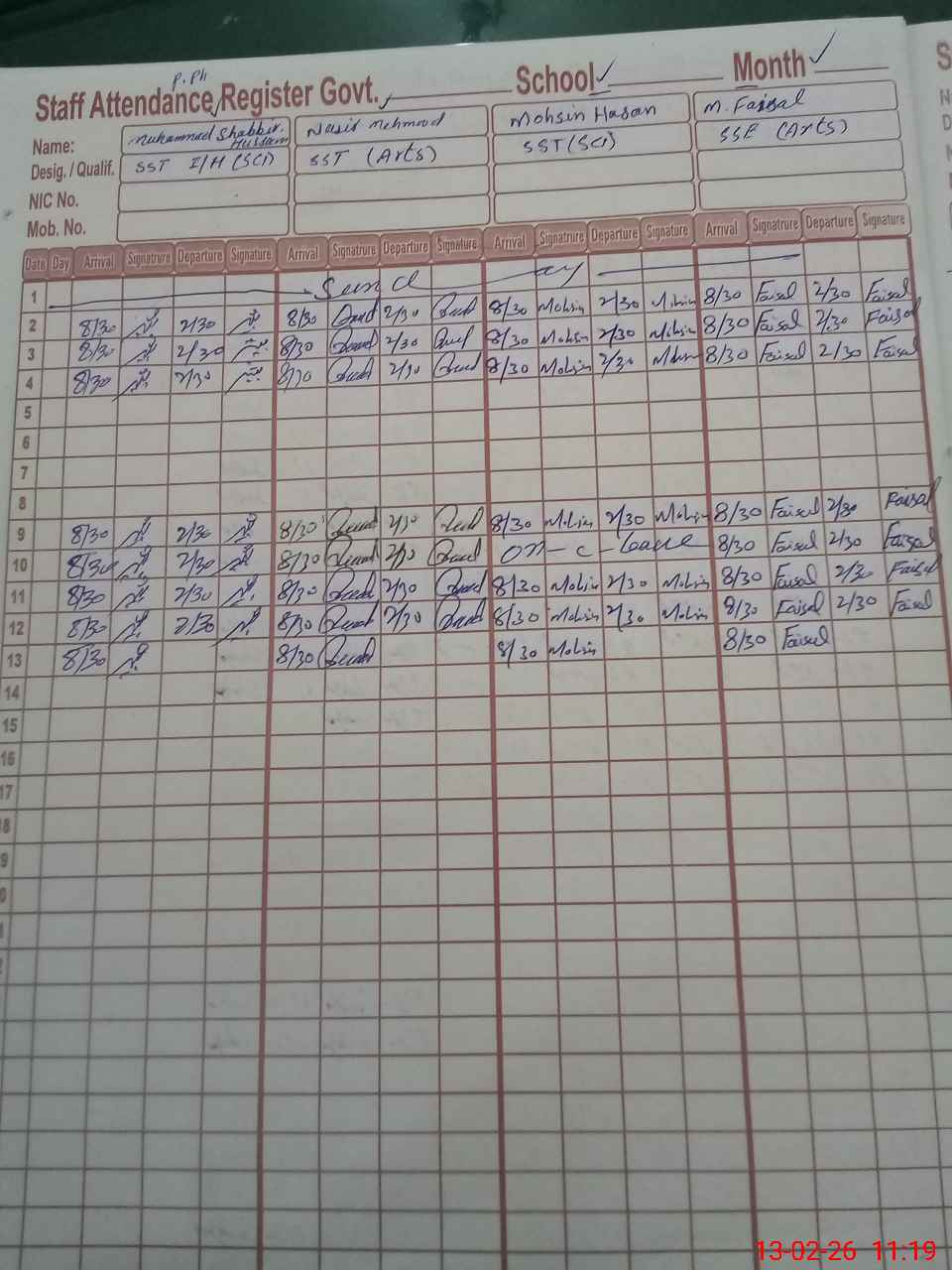 | Name: Ha**** Mu**** Sh**** Designation: (School Headmaster's/Headmistress's) SST Phone/Cell Number: 03**** |