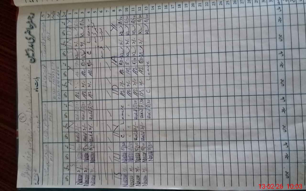 | CNIC | Full Name | Designation | R/C | Absence During Last Calender Month |