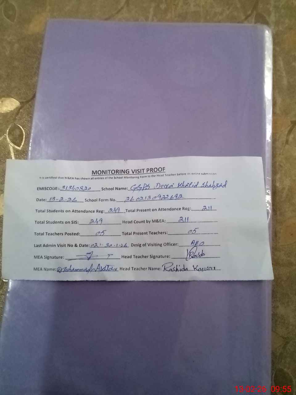 | EMIS Code: 31340820 | Name of School: GGPS DERA KHALID SHAHZAD | |||
