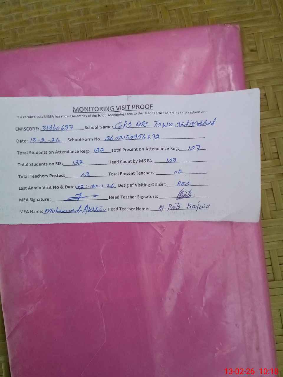 | EMIS Code: 31340687 | Name of School: GPS MC TOWN SADIQABAD | |||