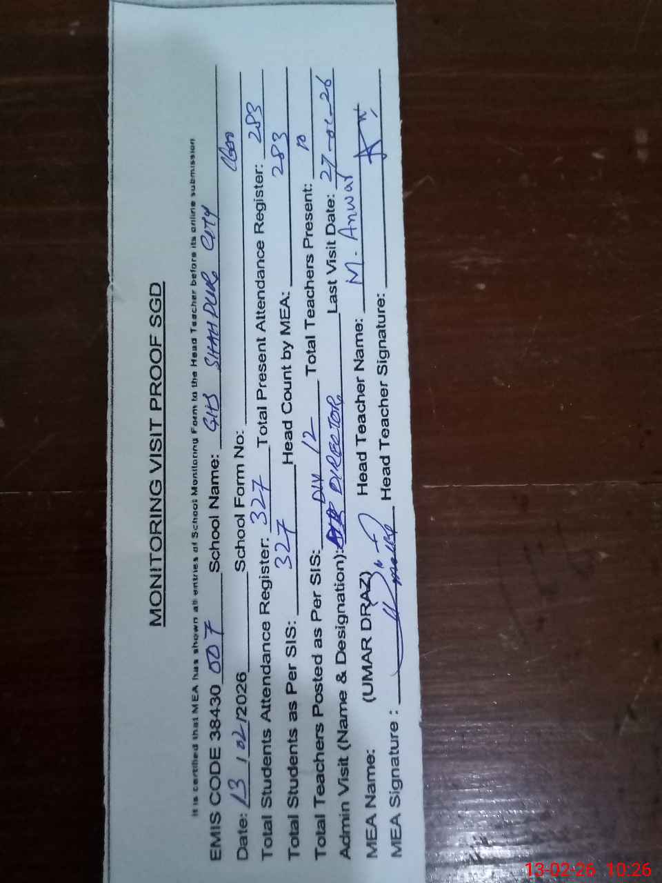 | EMIS Code: 38430007 | Name of School: GHS SHAH PUR CITY | |||