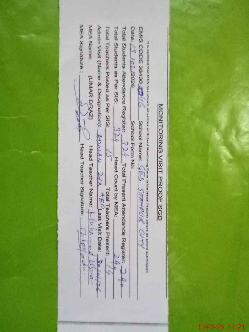 | EMIS Code: 38430046 | Name of School: GES SHAHPUR CITY | |||