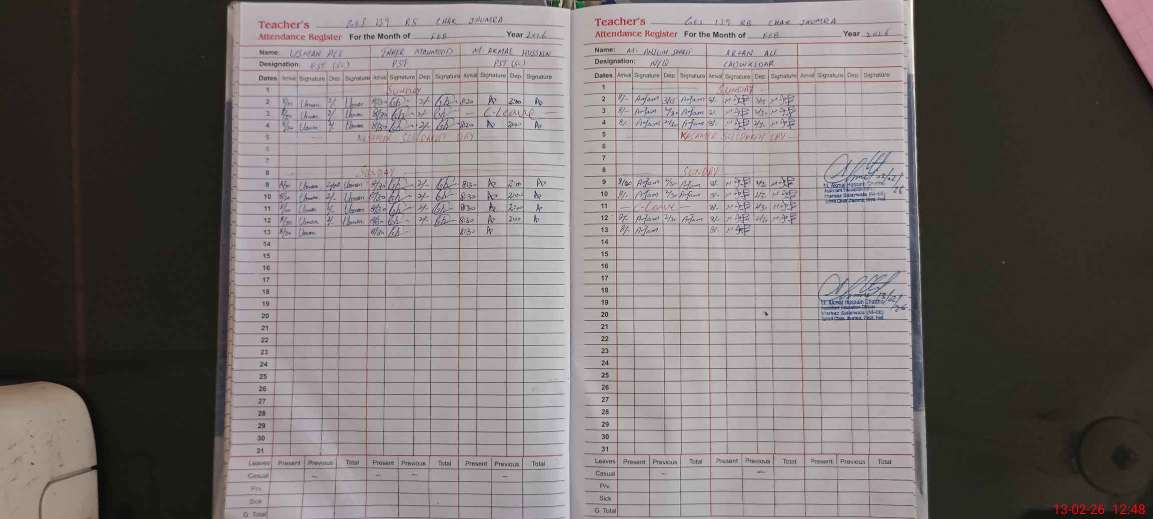 | CNIC | Full Name | Designation | R/C | Absence During Last Calender Month |