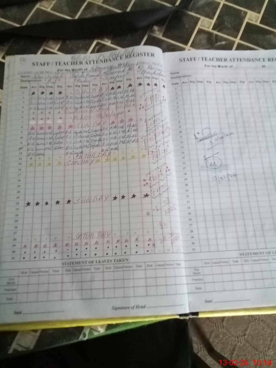 | Leave | Duty | Absent | Maternity | Medical | Ex- Pak |