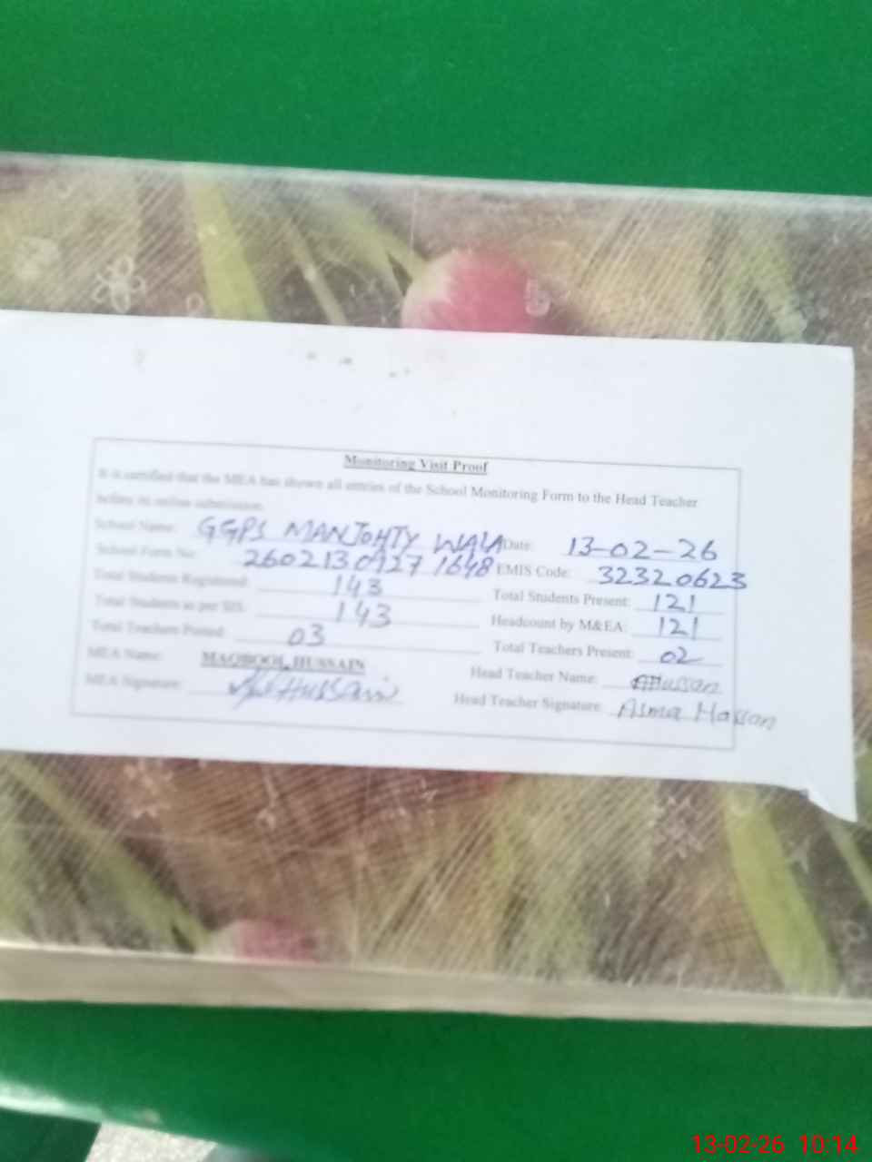 | EMIS Code: 32320623 | Name of School: GGPS MANJOTHAY WALA | |||