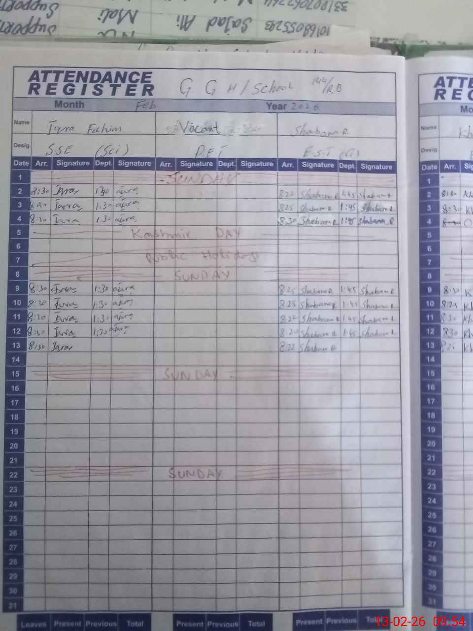 | CNIC | Full Name | Designation | R/C | Absence During Last Calender Month |