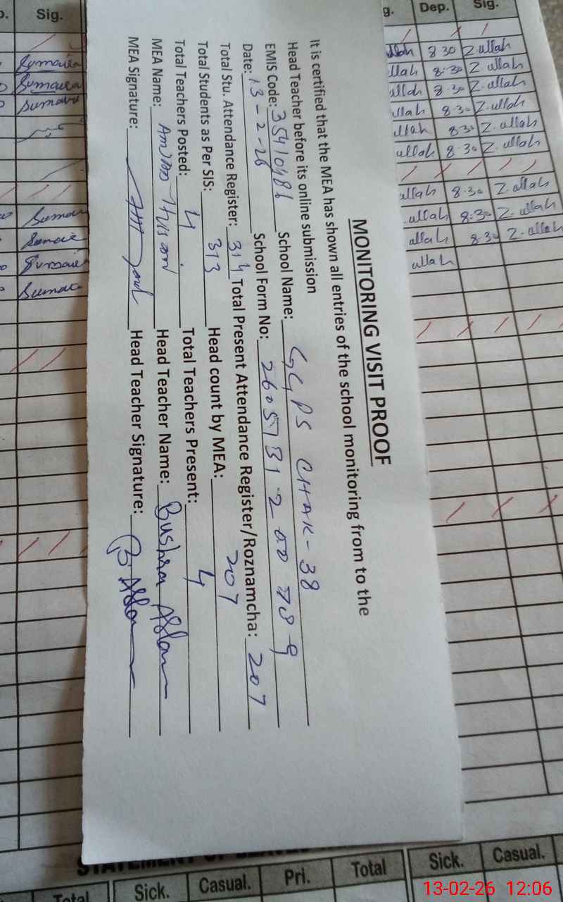 | EMIS Code: 35410486 | Name of School: GGPS CHAK NO. 38 | |||