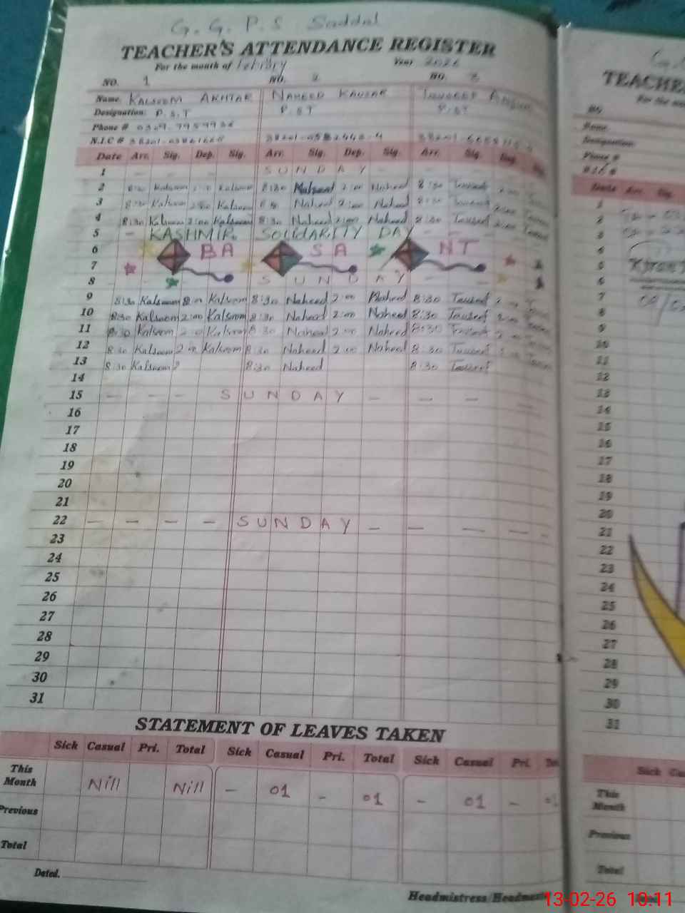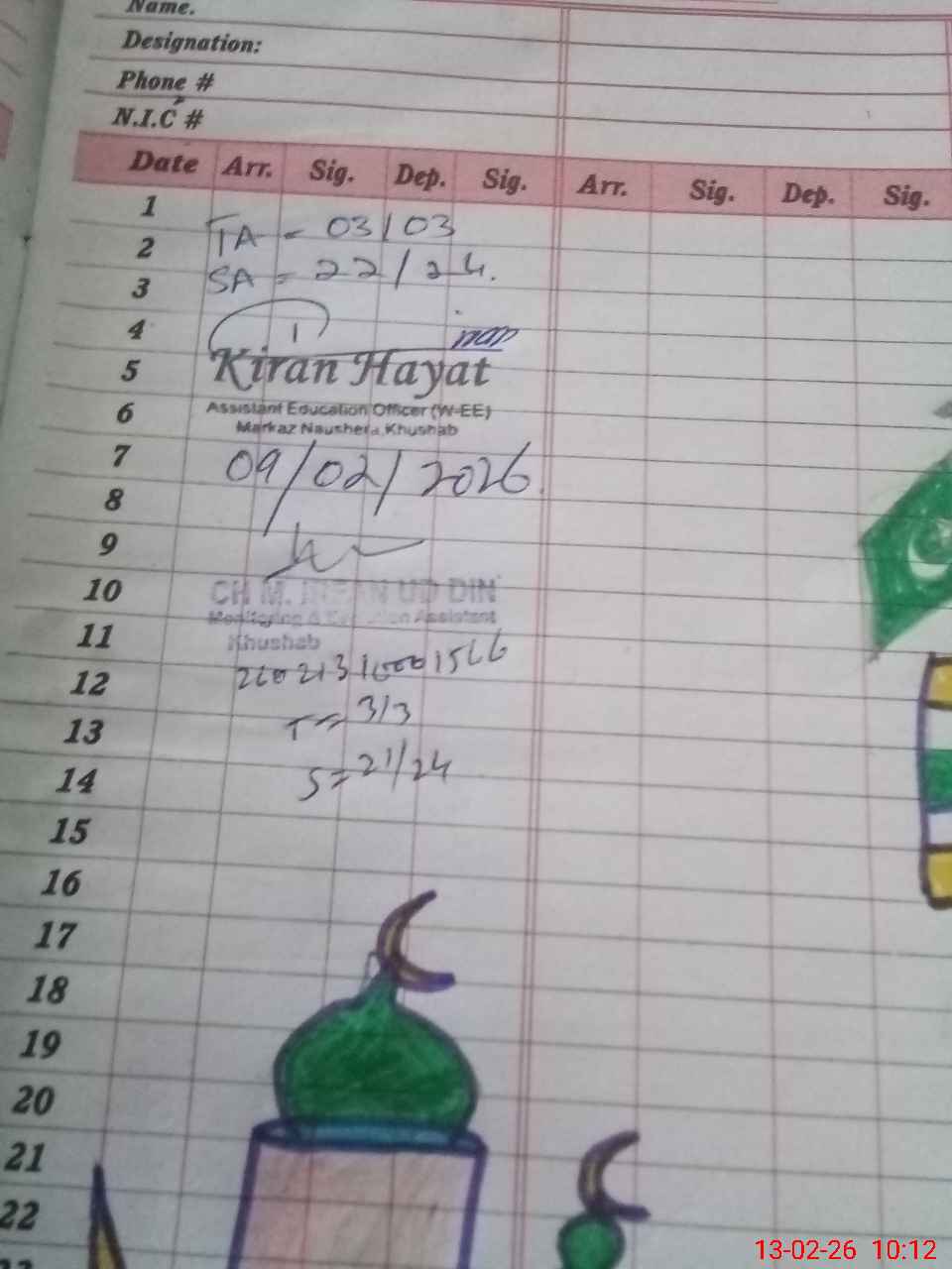 | Name: Ka**** Ak**** Designation: (School Headmaster's/Headmistress's) PST Phone/Cell Number: 03**** |