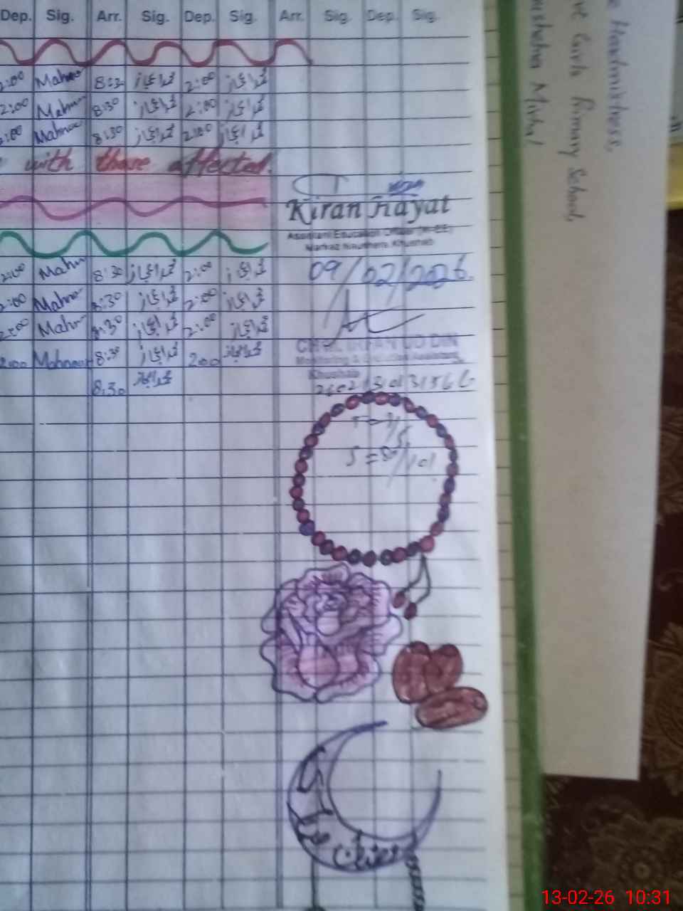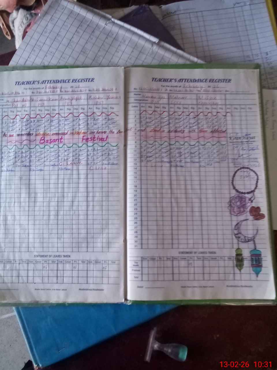 | Remarks (Use Separate Page if Required): ggps mirhal student on sis 101 student on register 101 head count 80 no teacher absent one on official leave checked on sis munaza ejaz is temporarily attached in school and do not have portal her leave is in written form hard copy checked sectioned posts are 4 but actually 5 teachers are in school teaching staff required 3 classroom required 2 washroom are under construction and fund needed to complete the work | |||||