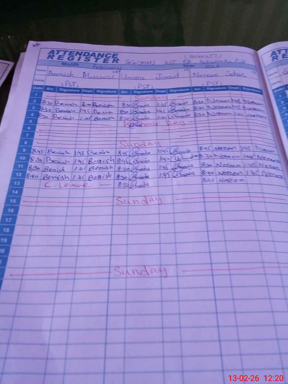 | 33**** | AL**** RA**** | BQ | Regular | 2 | 0 | 0 | 0 | 0 | 0 | 0 | 0 | 2 | Casual |